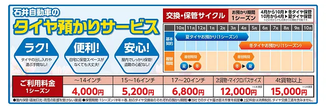 ②保管期間:1シーズン(春、秋のタイヤ交換後のそれぞれの預かり期間)